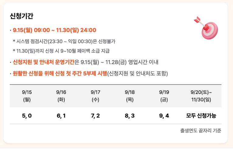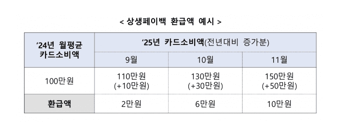| Q: 환급액은 언제 지급되나요? | A: 9월 사용분은 10월 15일, 10월 사용분은 11월 15일, 11월 사용분은 12월 15일에 지급됩니다. |